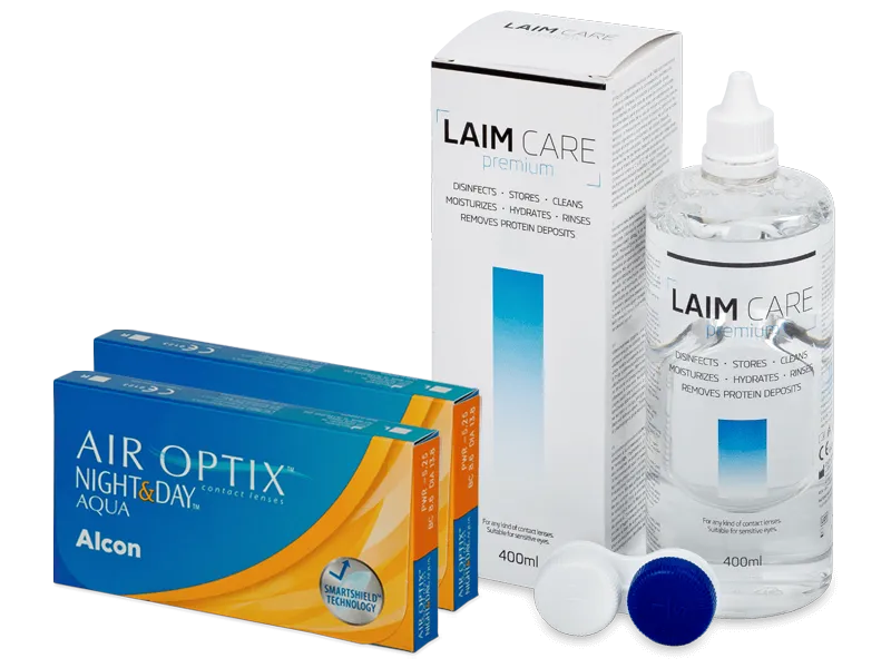Air Optix Night and Day Aqua (2x 3 čočky) + roztok Laim Care 400 ml