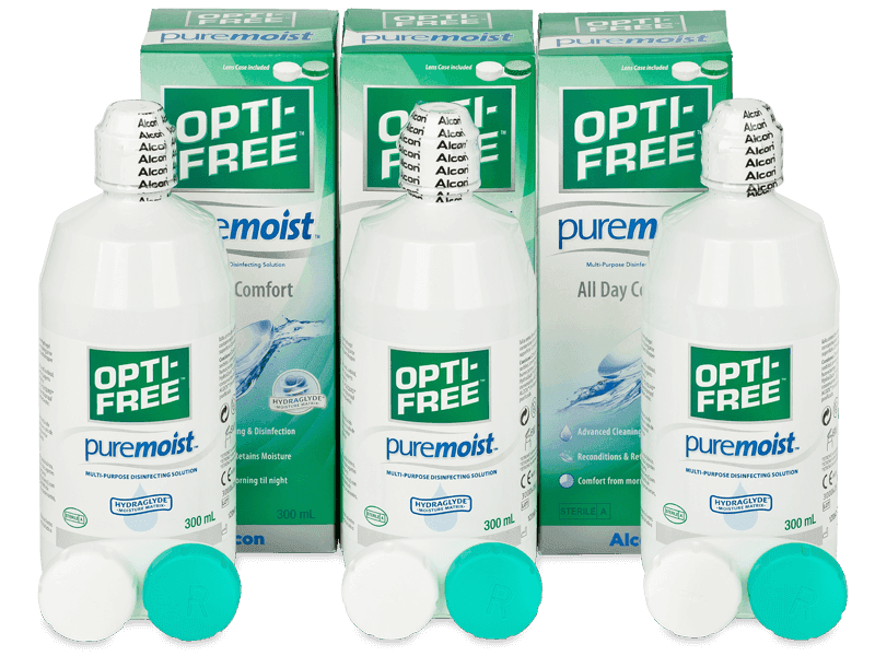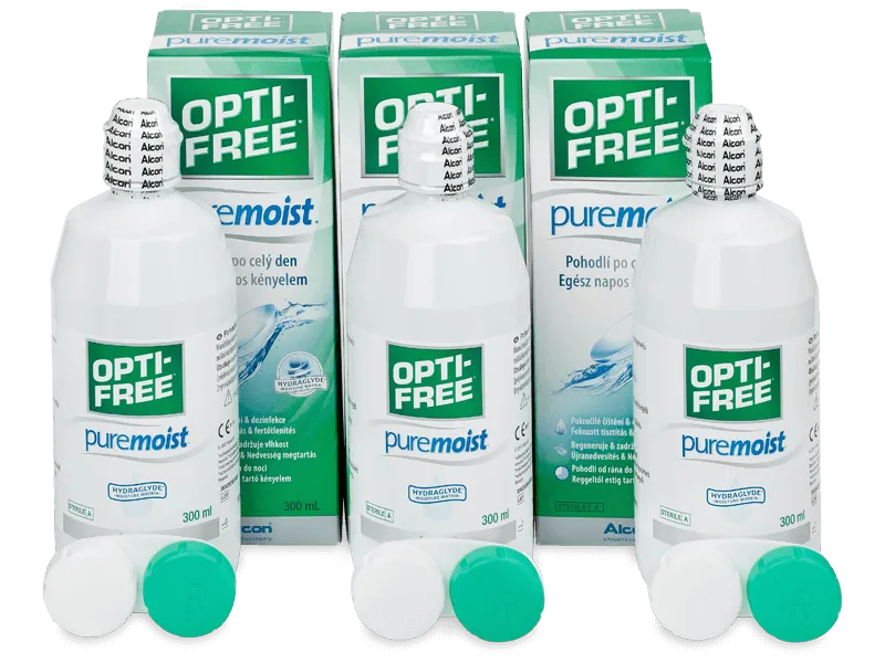 citronan sodný, chlorid sodný, boritan sodný, aminomethylpropanol, sorbit, disodium EDTA, dvě zvlhčující látky TETRONIC a HydraGlyde s konzervačními látkami POLYQUAD.Vlastnosti - Roztok OPTI-FREE PureMoist 3x 300 ml