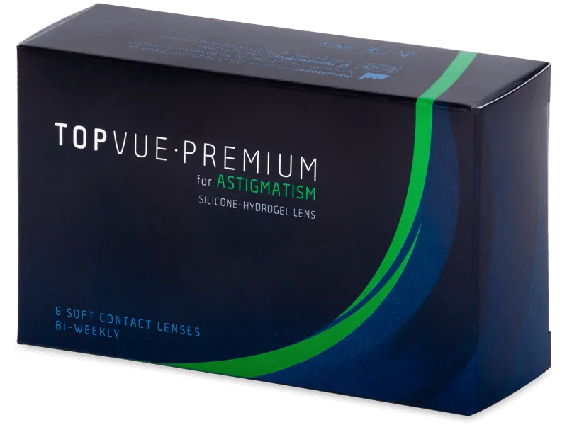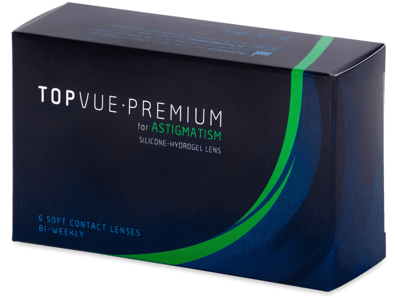 TopVue Premium for Astigmatism jsou torické kontaktní čočky korigující astigmatismus. Design čoček zajišťuje stabilní polohu čočky na oku. TopVue Premium for Astigmatism jsou extrémně prodyšné a zároveň mají vysoký obsah vody.Vysoce prodyšné